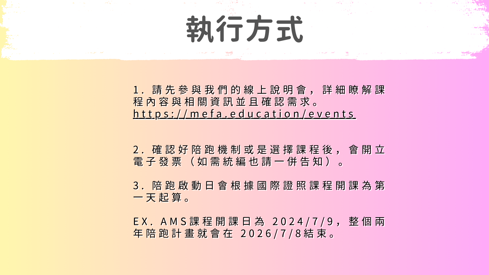 請先與MEFA聯繫,確認要參與的課程,再進行報名。