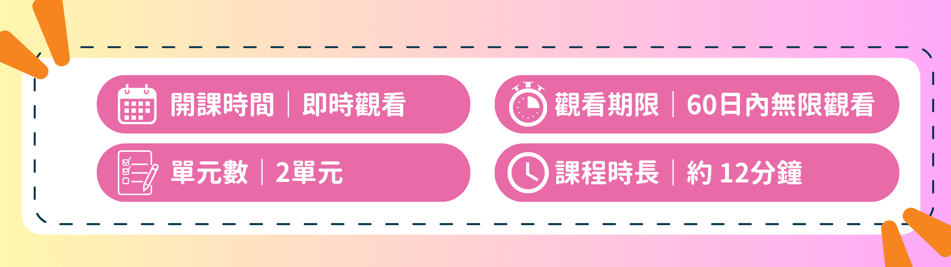 我們非常歡迎你在課後與他人分享自己的學習心得與實務反思,但課程影音本身仍需依正常管道,由個別帳號購買與觀看。