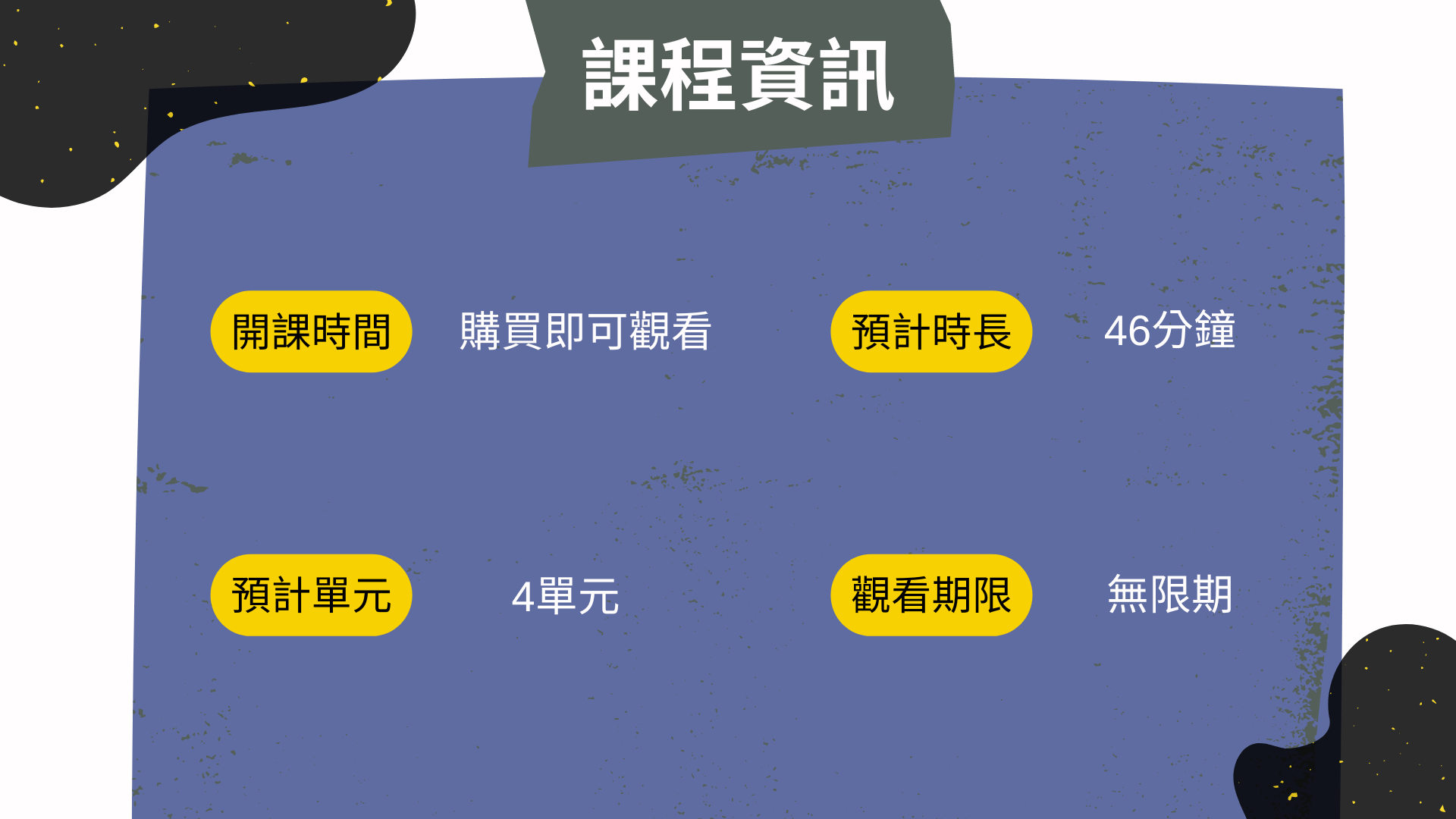 我們非常歡迎你在課後與他人分享自己的學習心得與實務反思,但課程影音本身仍需依正常管道,由個別帳號購買與觀看。