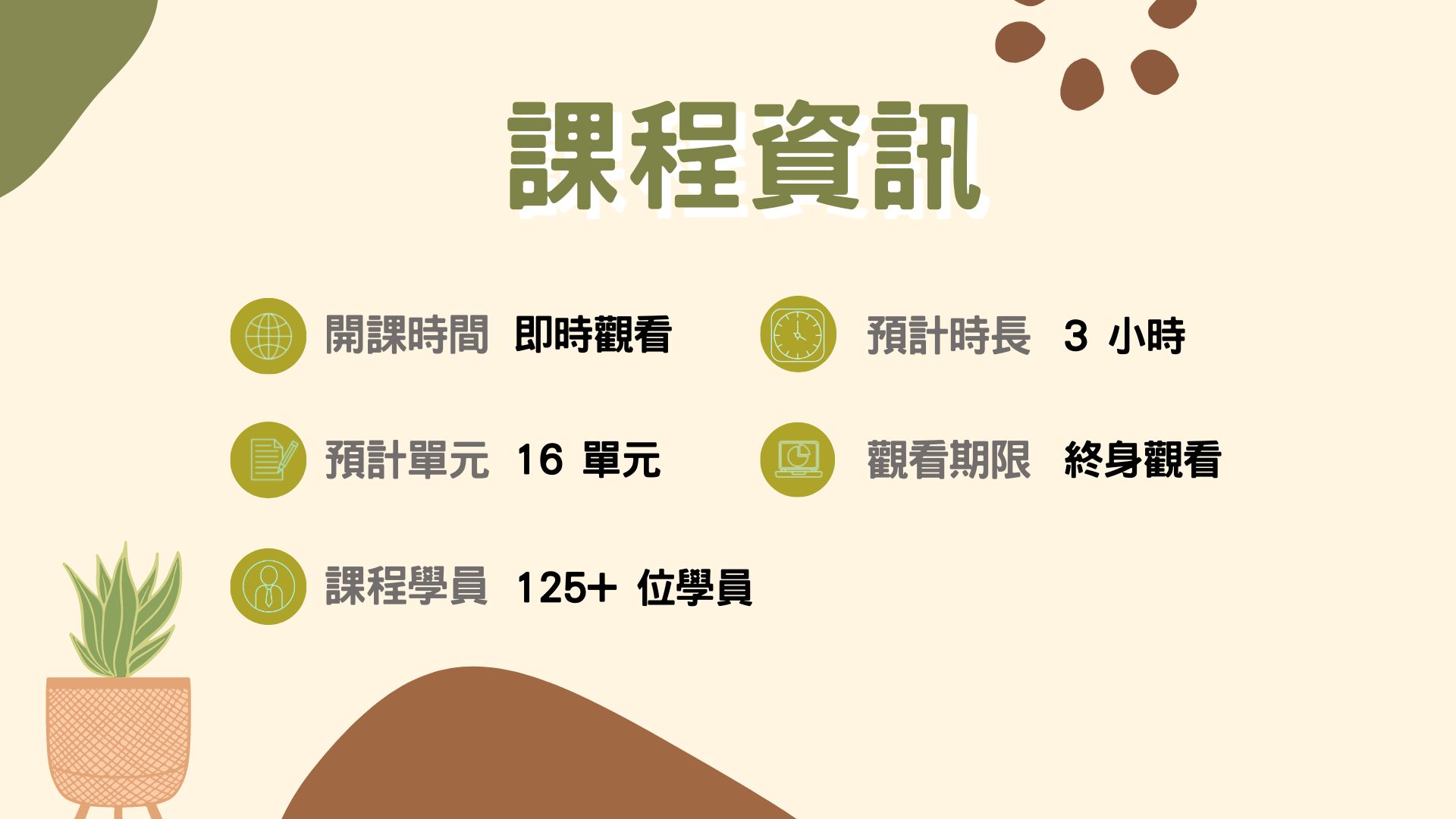 課程內容共 16 個單元•總時數約 3 小時