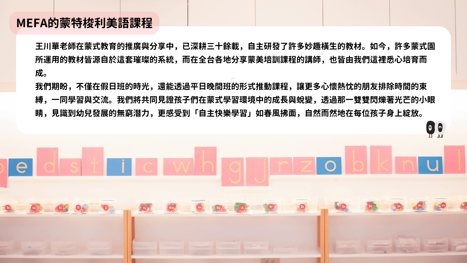 蒙特梭利美語專業培訓課程,規劃每年開課,歡迎依據自己的規劃選擇報名培訓的班別。