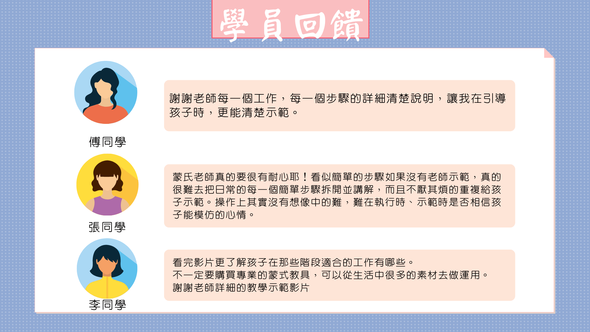 MEFA 的每一門線上課程,皆由教學與製作團隊投入大量時間與專業心力完成。也因為有學員的支持,我們才能持續產出深度且具品質的蒙特梭利教育內容,對此我們深表感謝。