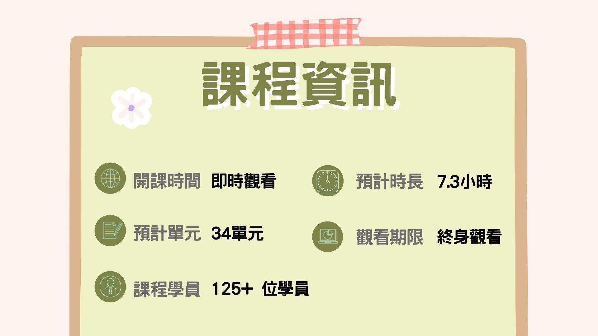 課程內容共 34 個單元•總時數約 7.2 小時