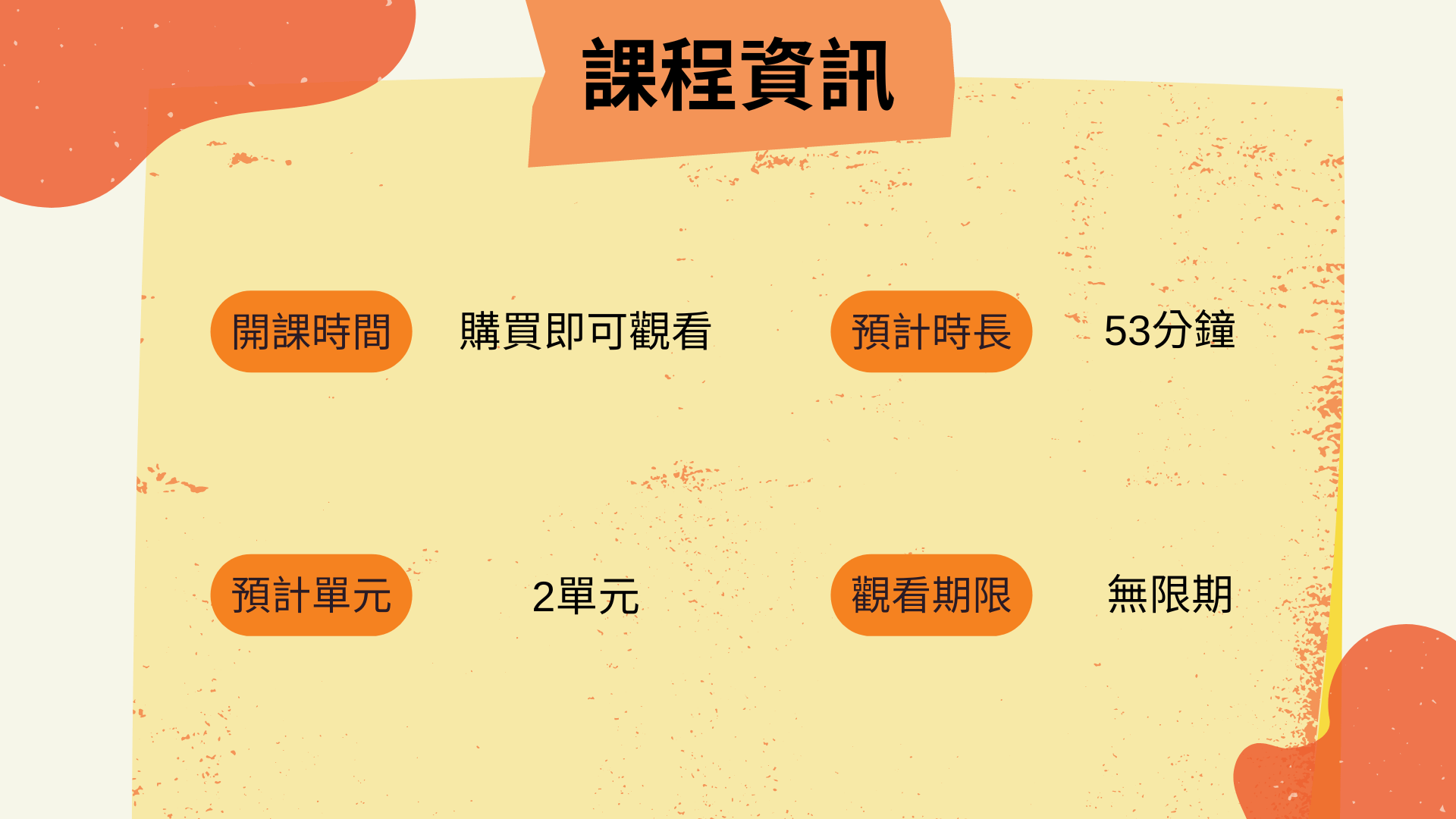 我們非常歡迎你在課後與他人分享自己的學習心得與實務反思,但課程影音本身仍需依正常管道,由個別帳號購買與觀看。