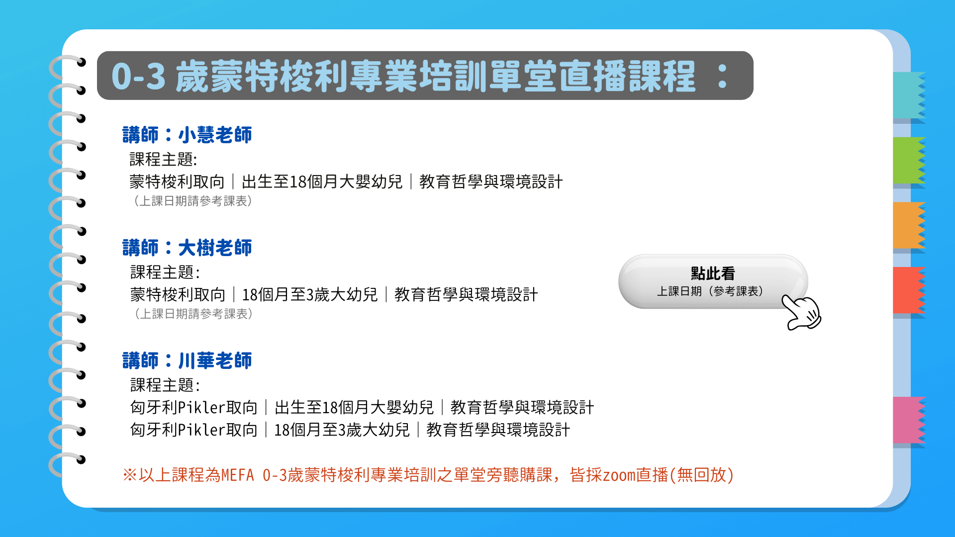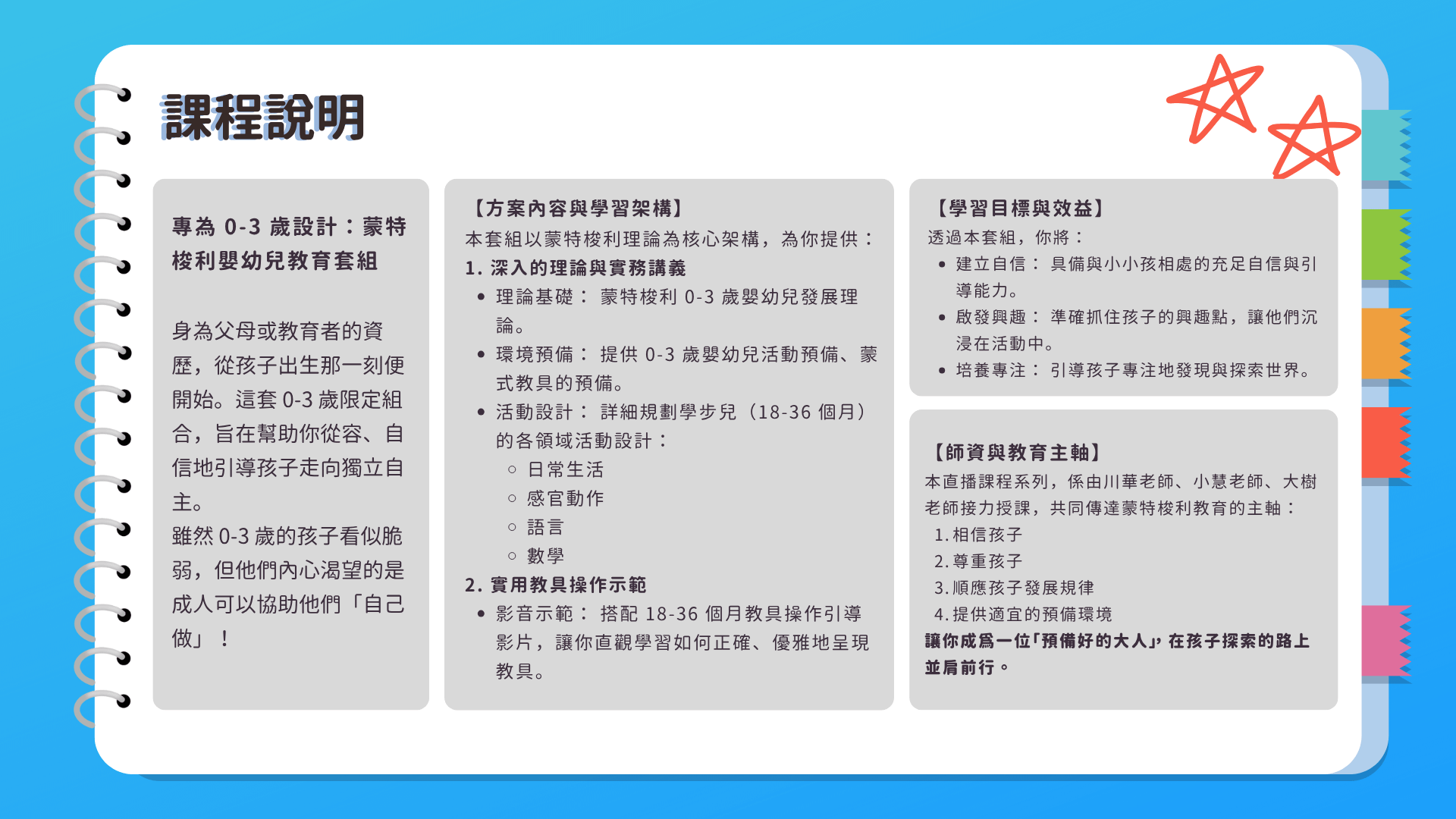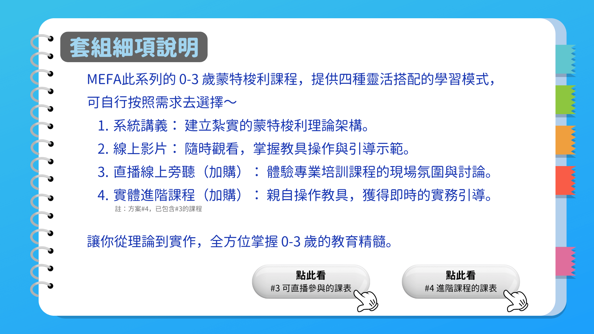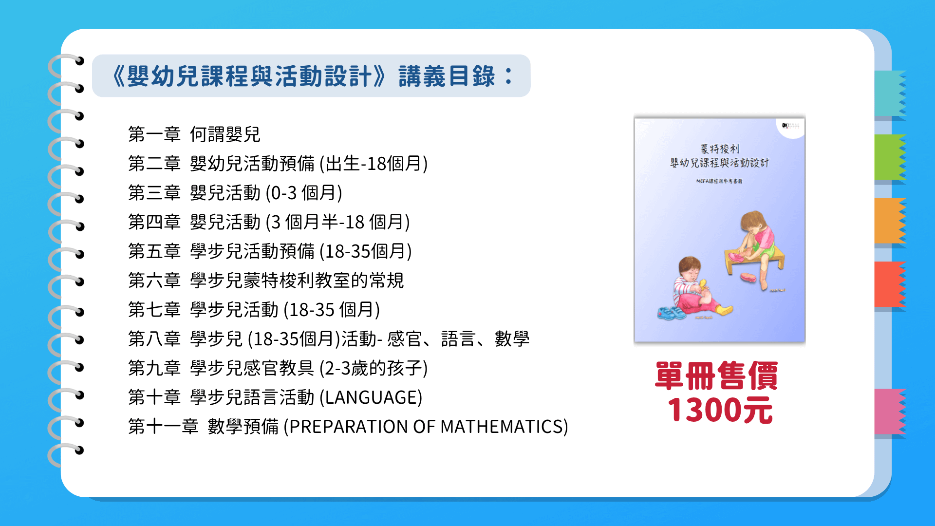 ▶一冊:蒙特梭利嬰幼兒課程與活動設計講義(下單時請確認寄送講義地址,海外需自付運費)