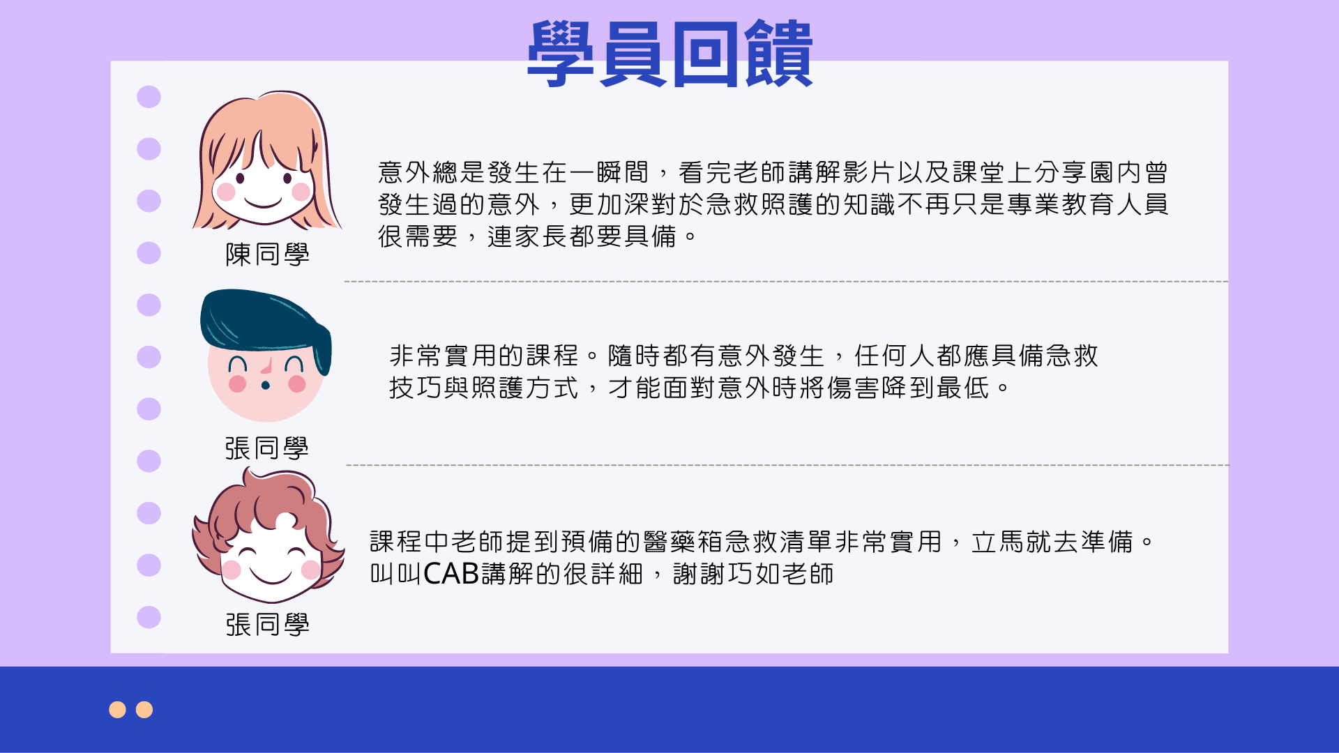 - 若因重大疾病、懷孕生產導致無法繼續上課,須持公立醫院證明,透過官方line與MEFA溝通、說明狀況,可視情況保留名額至下一期,並將酌收$1000行政費用。