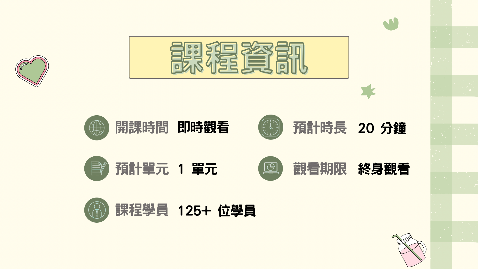 參加課程前,請務必確認時間安排;一旦繳交費用完成,即屬完成報名程序、並保留學籍。