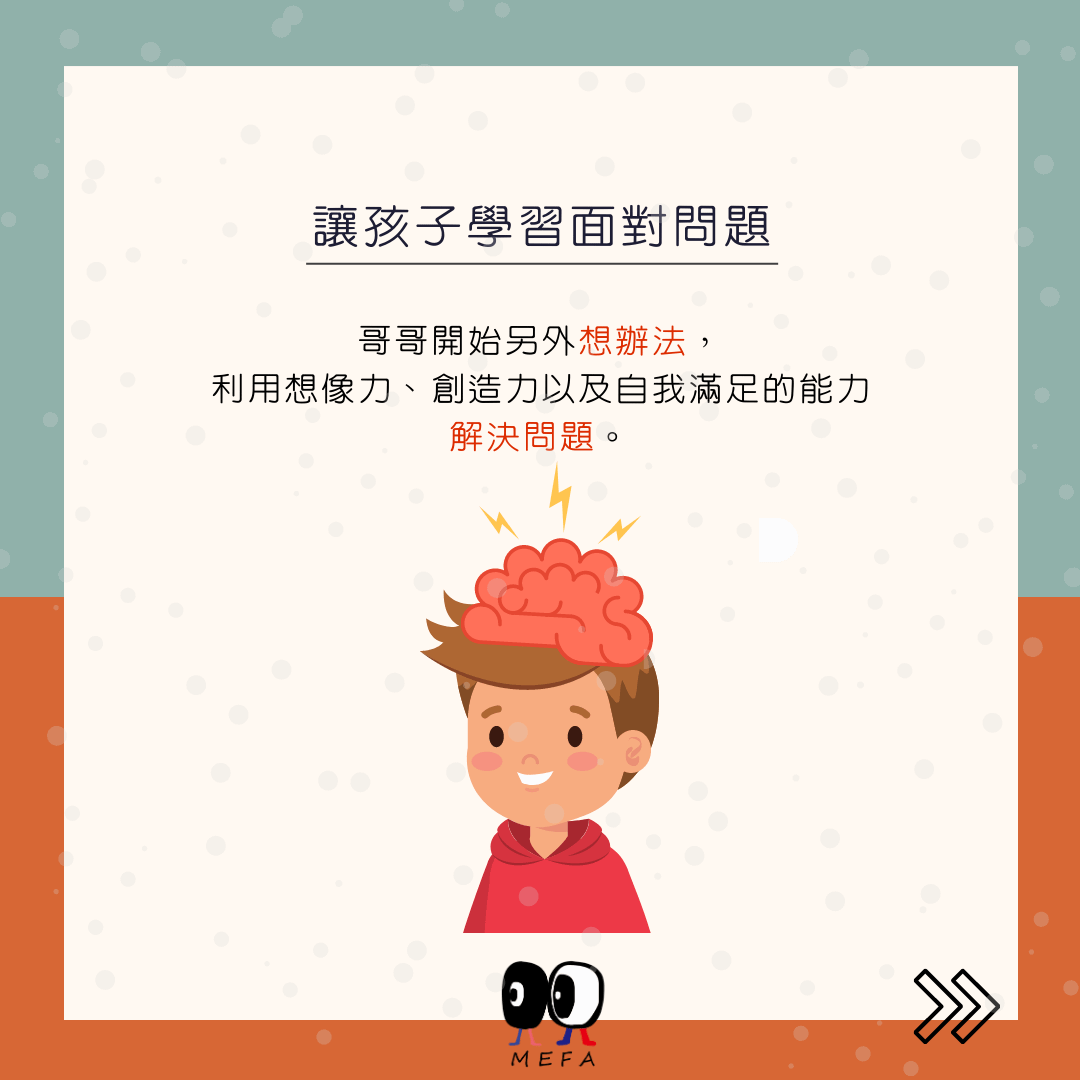 試想一下,如果氣球破掉後,成人馬上介入了、幫孩子想辦法,例如、立刻拿出新的氣球或是任何其他的物品替代,那就不會有這樣的出乎意料的結果了。而從這樣的結果、你可以感受到孩子的想像力、創造力以及自我滿足的能力。