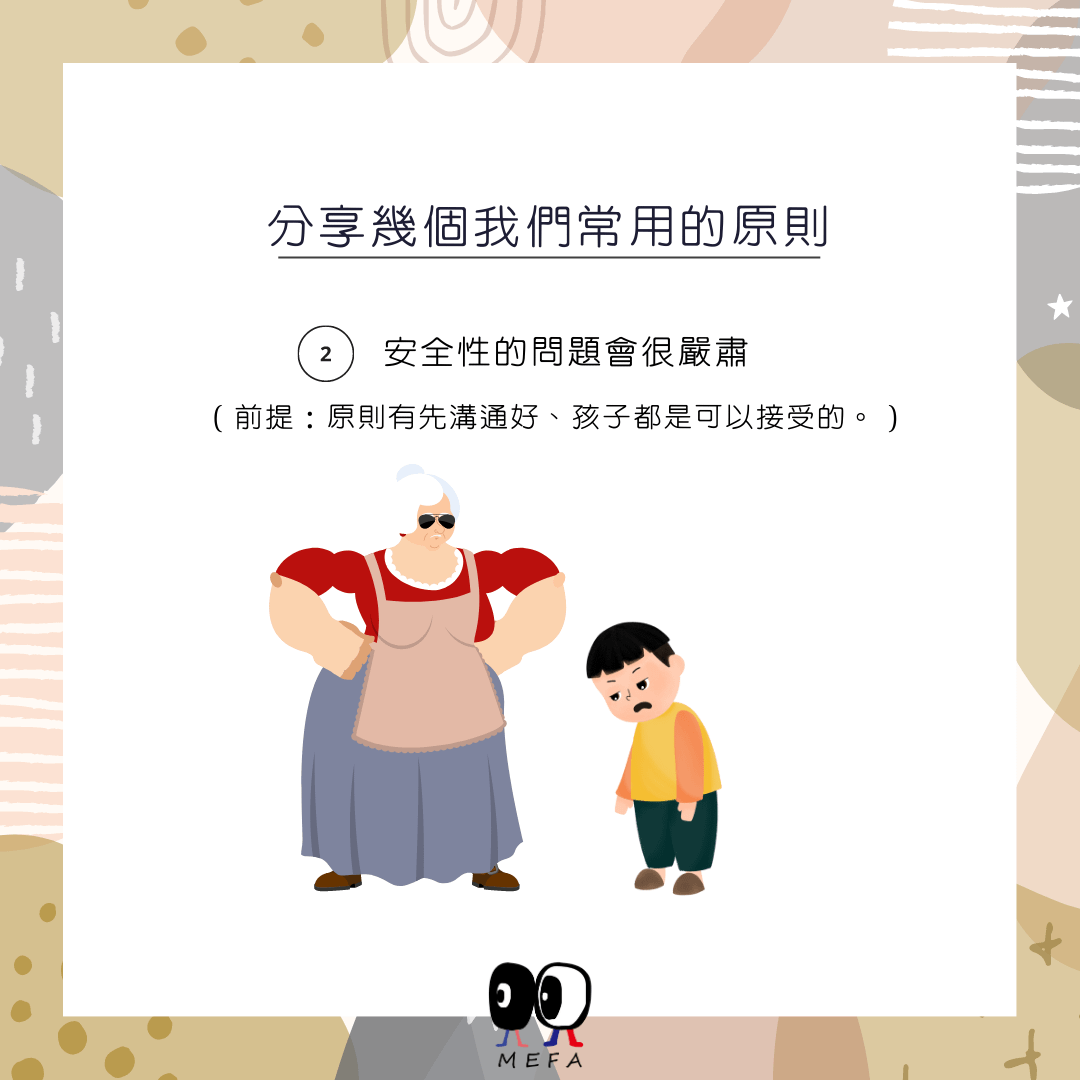 很嚴肅的意思是、我們可能會很兇,或是會沒有提醒下就直接大聲。但這個原則有先溝通好、孩子都是可以接受的。