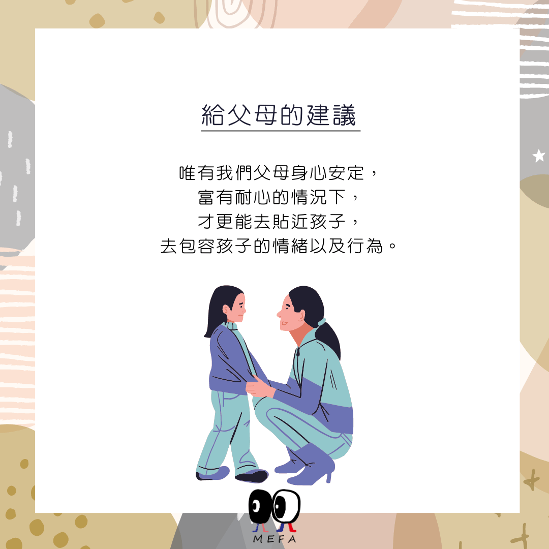 想和各位父母分享的是,唯有我們父母身心安定,富有耐心的情況下,你才更能去貼近孩子,去包容孩子的情緒以及行為。而至於父母的身心如何安定?那又是另外一個議題了。我們共同努力吧~