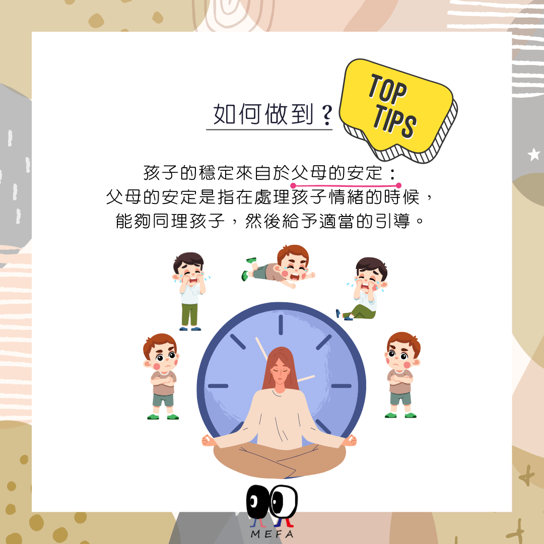 而所謂的父母的安定是指在處理孩子情緒的時候,是否能夠同理孩子,然後給予適當的引導。還是你用強硬的態度,要求孩子一定得怎麼做?你能理解孩子的秩序感敏感期嗎?你能理解情緒表達方式都不一樣,什麼樣的方式是合理的表達情緒呢?