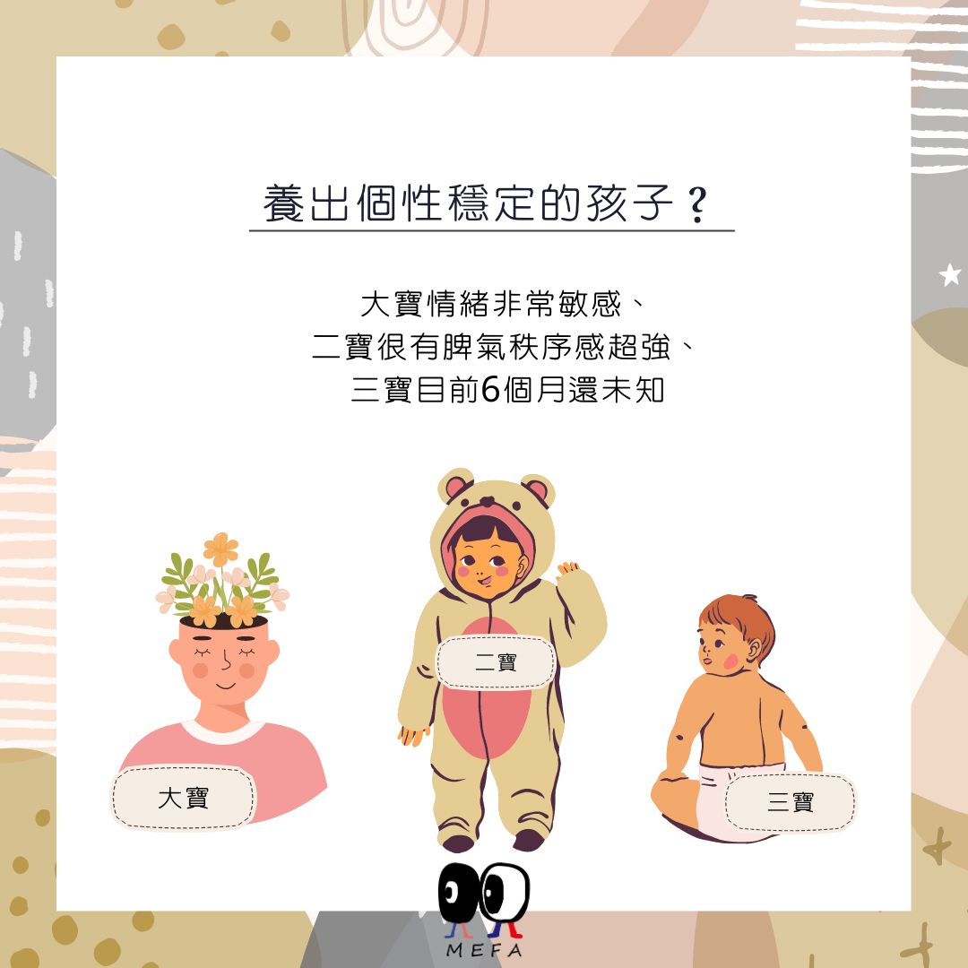 養育三個小孩後,身邊時不時會有長輩或是朋友跟我們說,你們很幸運,因為三個孩子的個性都很穩定。(我心中總是有很多的OS,只是他們的爆炸還有溝通過程你們沒有經歷好嗎!)我們背後可是有非常多的辛酸血淚啊…