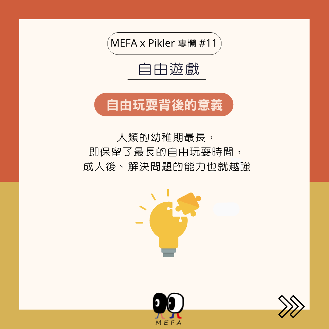 玩耍遊戲是孩子自發獨立發展的領域之一。如同動物的自發運動,孩子自主發展從仰躺到邁步走。「自由遊戲」指的是自己發明、自己發現的玩耍活動。傳統的育兒理念或一般的遊戲教具(幾何立體投入盒)都提示照顧者必須去教的訊息與責任,孩子必須從照顧者身上學習,以免落後輸在起跑點上。