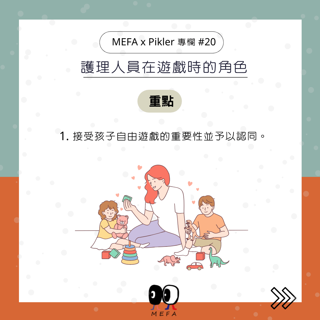 1. 接受孩子自由遊戲的重要性並予以認同,大人過多的遊戲指導會增加孩子的挫敗感。