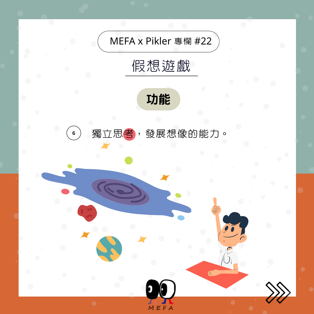 2.非現實所允許或現實無法實現的創造性活動,可讓孩子自己自主獲得滿足。
